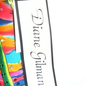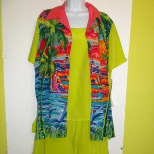 Dianne Gilman UNUSED w tags short set, chartreuse/coral, reversible tank, reverses to chartreuse or coral, size 6-8 Small, tropical print, sequins, hand wash 100% silk