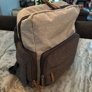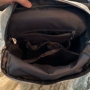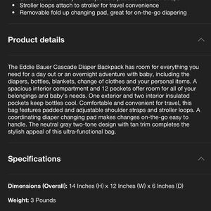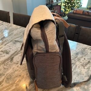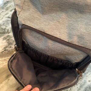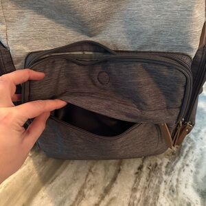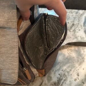 Loved this diaper bag! So many pockets for all the baby things. Has two side pockets, one that’s insulated which made it great for keeping things cold and the other held a full size pack of wipes which made diaper changes easy! Loved that the insulated pocket was tall enough to hold tall bottles as well as short ones and water bottles when my baby got a little older. This bag is the perfect size to hold all the things that you need when you’re on the go with a baby. It has stroller clips which made it great to attach to the stroller but also a shopping cart when needed.