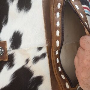 100% genuine leather and cowhide, diaper bag or carry bag.