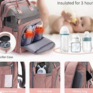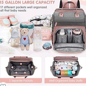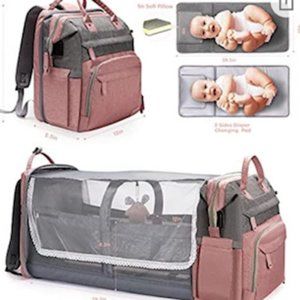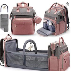 Baby Diaper Bag Backpack, Diaper Changing Station,Derjunstar Portable Crib Backpack for Boys Girls,Waterproof Changing Pad,USB Charging Port,Pacifier Case, Sunshade and Toy Bar, New Mom Gifts for Women