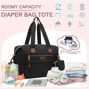 Diaper Bag Tote Waterproof Black Baby Travel Bag with Stroller Clips Case