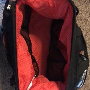 Well cared for diaper bag. Wonderfully divided with 6 net style interior pockets. Exterior pockets include insulated bottle, changing pad, wipe box and general. Truly keeps everything organized!