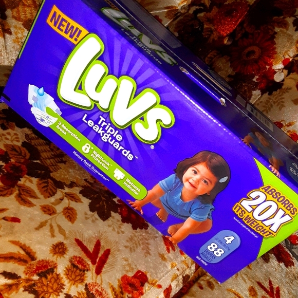 Size 4 88ct box of Luvs diapers absorbs 20x its weight triple leakguards unopened we're potty training so just decided to go with pull ups instead