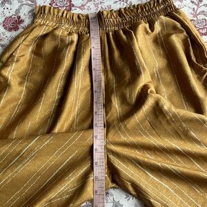 Diarrablu Leer High Rise Pull On Satin Palazzo Wide Leg Pants Gold Large Boho
