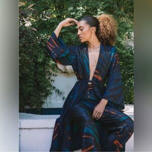 Matching set includes Awa Kimono in Baol Teal pattern size Small (definitely generous/adjustable and can fit size medium) and Leer Pants in Baol Teal pattern size Medium