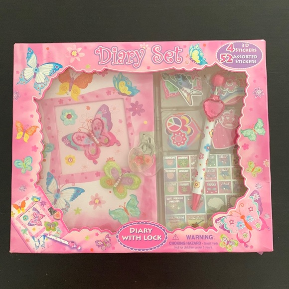 Includes a diary with lock & keys, a pen, four 3-D stickers, and 52 stickers. NIB.