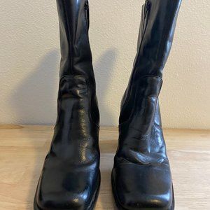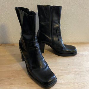 90’s to 2000’s black leather platform boots size 10. Heel is a little over 3" high.