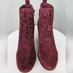 Diba Blake Suede Ankle Bootie Wedge Heel Lace Up Round Toe Burgundy Womens