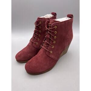 Diba Blake Womens Burgundy Red Suede Wedge Ankle Booties Size 10