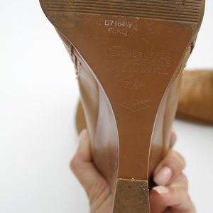 Adorable Dina tan leather ankle boots with a wedge heel and decorative stitching. Excellent condition