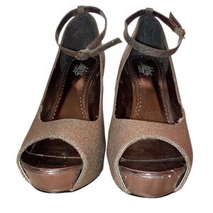 Diba East “Nella” Glitter Platform Stilettos w/ Ankle Straps in GLD/COP SZ 10M