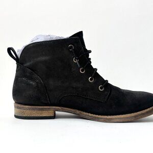 Diba Eli Genuine Black Leather Combat Black Ankle Booties - sz 8