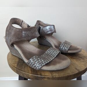 Diba Gold/Sparkly Braided, Freedom Leather Wedge Sandals/Heels (SIZE 7.5)