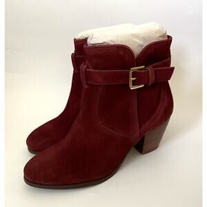 Diba Heeled Genuine Suede Buckle Boots Burgundy Red Size 7 NEW