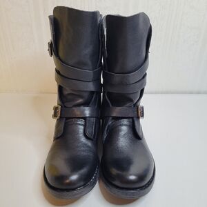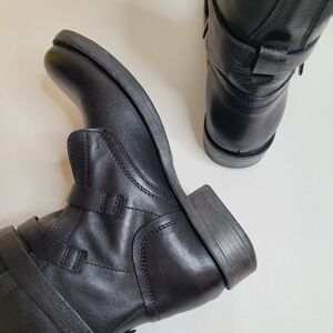 Diba Jet Way Moto Boots Womens 6 Black Leather Buckle Zip New