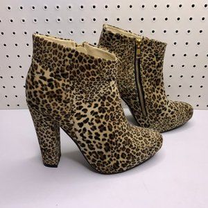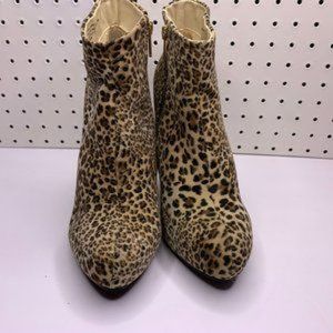 Sexy and on trend these leopard print booties have a 4 1/2" heel and gorgeous gold inside zipper for easy on/off.
