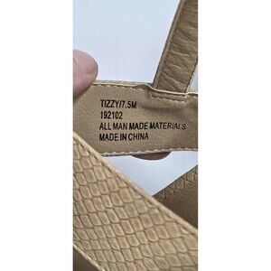 The Diba London Beige Faux Leather Strappy High Heel in size 7.5 is a sexy and stylish addition to any woman's shoe collection. With a 4" heel and wood platform, these shoes offer both fashion and comfort. The strappy design and faux leather upper material add a touch of sophistication to any outfit, making them perfect for both formal events and a night out on the town. Step up your fashion game with these ultra-high heels from Diba London. Like New condition.