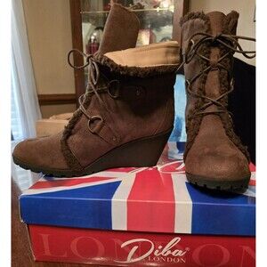 Diba London Boots Women 10 NEW Brown Wedge Lace-up