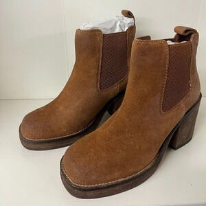 Diba NWT Women's Boot Sereta Brown Suede Leather Chunky Heel Ankle size 6.5