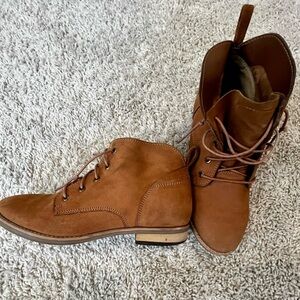 Diba SZ 8M camel suede lace up bootie. Comfortable and in great condition. Wear tied under your pant leg or loose and over them.
