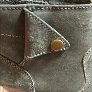Diba Sophia Suede Boots with side zipper, Size 7.5. Round toe, grommet fold design. Olive, Army Green. Pre-owned, gently worn.