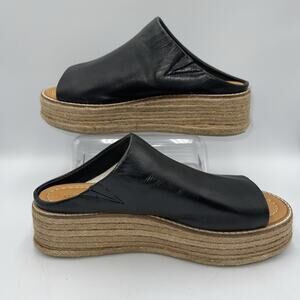 Diba True Abigail Womens Black Leather Slip On Paltform Sandals Size 9 M