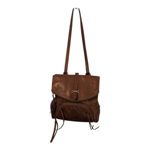 Diba True Brown Leather Backpack Crossbody Shoulder Bag Distressed Boho Hippie