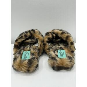 Diba True Cay Lee Size 6 Fuzzy Leopard Slipper Sandals Comfort New in Box