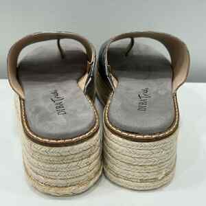 Amplify your whole look in the Demi Chase by Diba True. This platform slide has a sleek leather upper with toe loop and is grounded by an espadrille-inspired platform. A cushioned insole paired with a braided rope outsole provides maximum comfort.