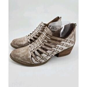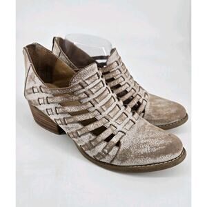 Diba True Festival Distressed Strappy Leather Off White Ankle Booties Shoes Sz 7