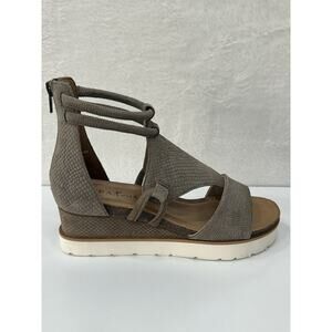 Diba True Green Clover Snakeskin Print Platform Wedge Suede Size 6 Taupe NIB