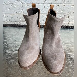 Chic ankle booties with a stylish gray and tan design. Perfect for versatile wear. Two tone suede and leather open side. Very cute and sexy bootie. Beautiful used condition.