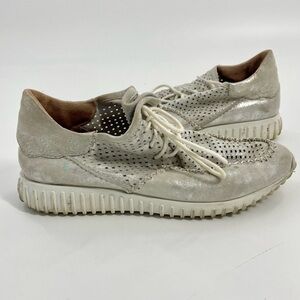 Diba True Poker Hand Perforated Silver Metallic Leather Lace-Up Sneakers 8