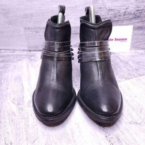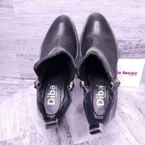 Diba True Skyler V Cut Leather Ankle Boot Black Silver Women's sz 6.5