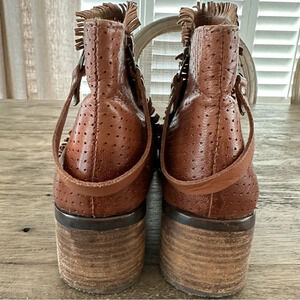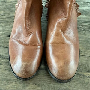 Diba True Womens 10 Brown Leather Short Boots Double Zip Up Fringe Western Shoes