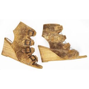 Diba True Gladiator Sandals Wedge Rugged Distress Leather Boho Western Buckle 9
