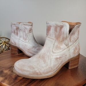 Diba Walnut Grove Distressed White Wash Bobo Western Ankle Boots Size 7.5