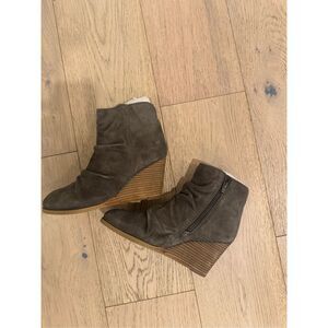 Diba Womens Grey Bailey Suede Leather Wedge Booties Boots Size size 8