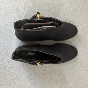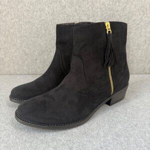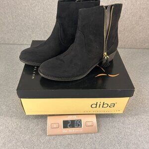 Diba Womens Size 7.5 Black Ankle Boots Booties Gold Side Zipper Low Heel NEW