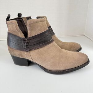 Diba Women's Skyler Ankle Boots Booties Tan Suede Brown Leather Size 8.5