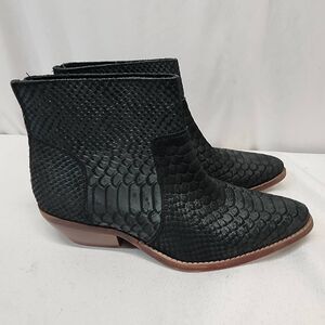 Diba Zora Leather Ankle Back Zippered Snake Embossed Heeled Boot Women's Size 8