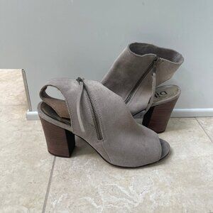 Product details: Add a touch of elegance to your look with the Diba Zora Peep Toe Bootie. A suede upper and peep toe design make this bootie stand out, while a stacked heel and ankle strap make it comfortable and easy to wear.
