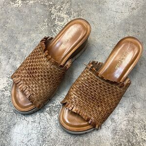 Diba True brand brown leather weave slides wedges very soft and comfy