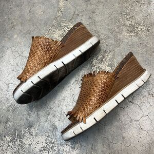 Diba True brand brown leather weave slides wedges very soft and comfy good used condition no damage features a wedge height of 2 1/2 inches
