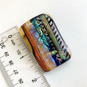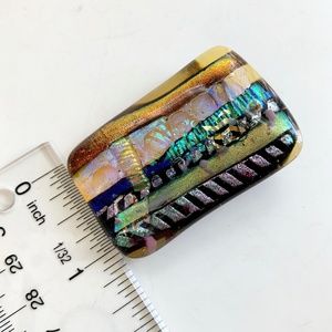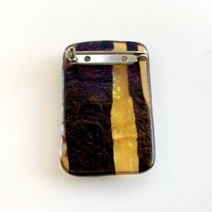 Dichroic Art Glass Brooch Pin, Gold Blue Black Yellow Rectangle 2" Long, Vintage