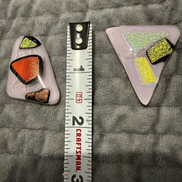 Dichroic Art Glass Triangular Pieces – Iridescent Fused Glass Decor (Set of 2)