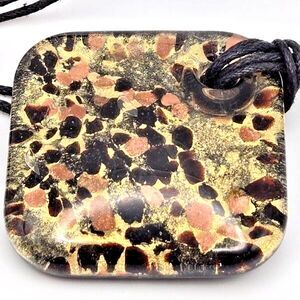 Dichroic Fused Glass 1.5" Square Pendant on 18" Hemp Cord Silvertone Closure