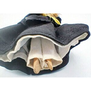 Please see photos for condition issues, I try to list anything I see here as well and feel free to send me a message with any questions. Minor stain on the right glove. Slight fraying on the black fabric. Stain on tag and pencil writing.