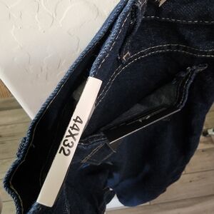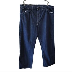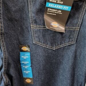 Dickey's relaxed fit 5 pocket work jeans dark wash. size 44 x 32. Brand new with tags. Approximate measurements while laying flat are: