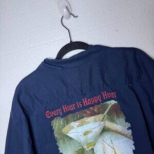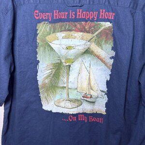 Dickie Walker Mens Size Large Linen Blend Blue Martini Beach Button Up Shirt